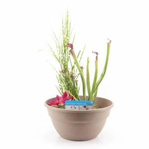 Mini vijver kunststof taupe Met zijn neutrale taupe kleur is deze mini vijver geschikt voor ieder terras! De teil wordt geleverd inclusief vijvermand met daarin 3 waterplanten die vooraf geselecteerd zijn door de leverancier. Na ontvangst giet u leid…